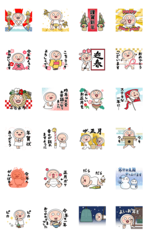 【復刻】動くしろめちゃん あけおめ決定版 スタンプ画像一覧