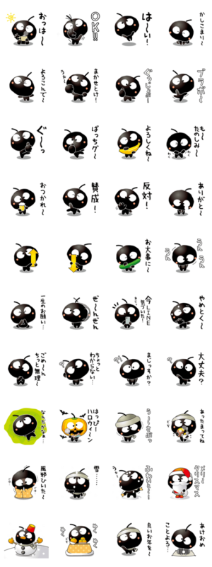 不思議な生物「くろっち-7」の冬スタンプ。 冬には冬の暖かスタンプ。KODO より発売