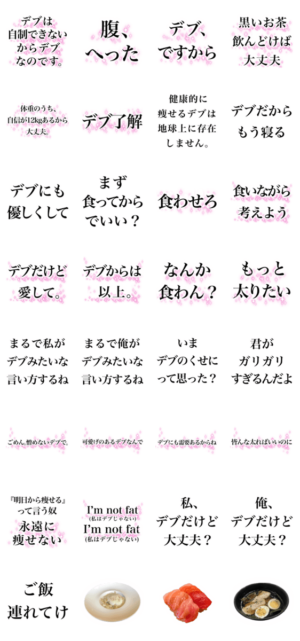 痩せる気のないデブ、今日から痩せたいでぶの為のスタンプを名言かのように送れるスタンプ【ぽっちゃりも使える】筋肉/ネタ/ハンバーグ/ラーメン/焼肉/寿司/うなぎ