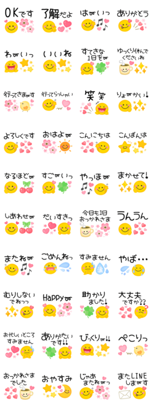 笑顔になれるスマイル♡使えるスタンプ スタンプ画像一覧