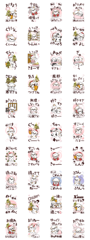 シーズーちゃんの冬に恋人に送れるスタンプです。時々クリスマス&サンタクロース。