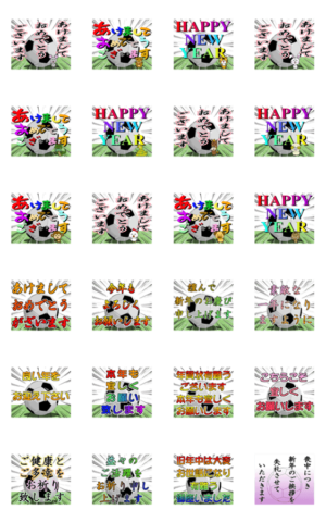 毎年使える年始挨拶スタンプです。(あけおめ、ことよろ、正月、十二支、 よろしく、年賀状、Happy New Year、サッカー、フットボール)※2023/1/3(火)23:59までに購入すると特典「LINEおみくじ」がもらえます。morimithu より発売