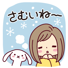 ショートボブの娘の冬スタンプ。冬のあいさつ言葉に、気遣い、定番リアクションを冬バージョンでお届け♪クリスマス・年末年始・寒中見舞いも。