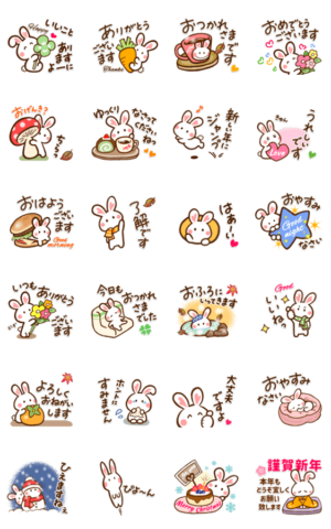 2023年の干支、うさぎさんの日常使えるスタンプです。耳のピンクのところがハートなんです。誰かに気づいてもらえるかな?