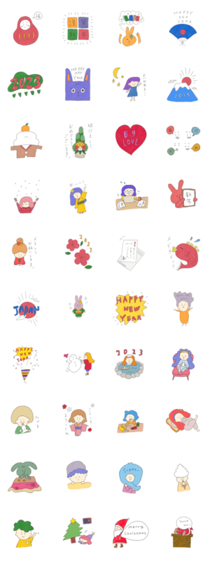 2022〜2023年の年末年始スタンプです。 のんびり系スタンプは日常使いもできます♪hatoko より発売