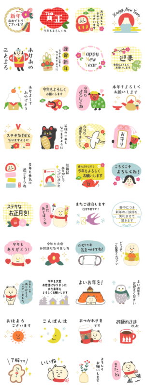 大人女子が使いやすい冬とお正月スタンプです。 敬語多めでママ友、お仕事、どちらでも使えます♪ 白ふち付きの文字なので、どんな背景でも見やすく便利です!※2023/1/3(火)23:59までに購入すると特典「LINEおみくじ」がもらえます。Kyochan より発売
