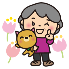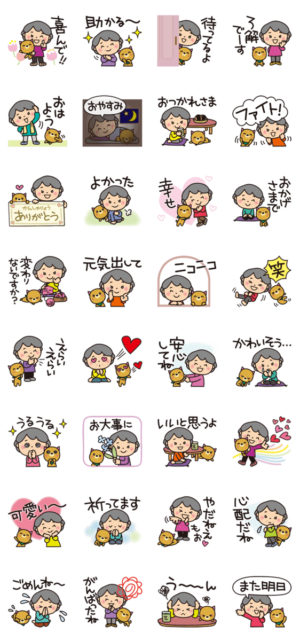 ばぁばとワンコのスタンプです。実家が思い出される人も多いのでは?