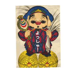 大阪市立図書館デジタルアーカイブのオープンデータ(利用条件 CC0コンテンツ、利用・改変.・商用利用可能)にある引札(ひきふだ)資料を使ったおもろいスタンプです!