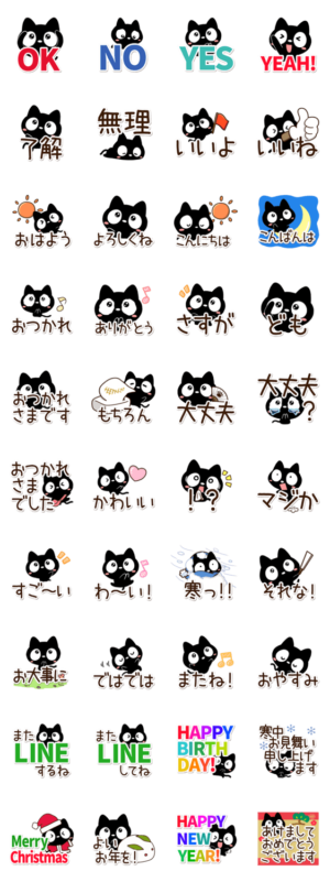 『クロネコすたんぷ』の絵文字と着せかえもあります。ずっと使えるちいさい黒猫のスタンプに、冬のあいさつもあります。可愛いくろねこ好きな方にぜひ。【かたこ】
