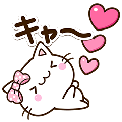リボンをつけた小さい白猫の『ちびシロ』。よく使うあいさつや、言葉等、毎日便利なネコスタンプです。しろねこ好きな方にぜひ。【かたこ】かたこ より発売