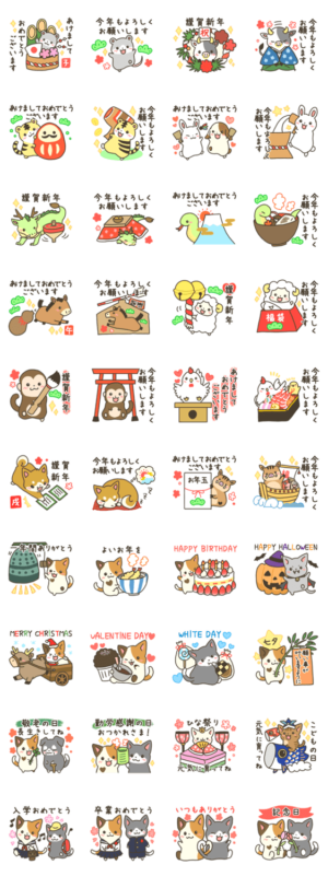 かわいい十二支の動物とねこ達がスタンプになりました!