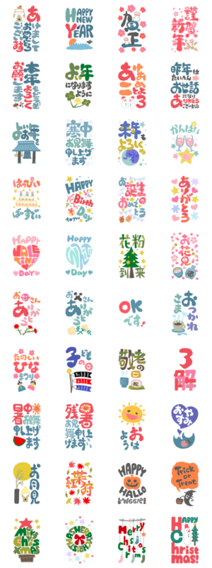 ゆる可愛い筆文字のBIGスタンプ。年末年始&お正月からクリスマスまでの年間イベントや誕生日、風物詩など、季節にあわせてお使いいただけます。あけおめ。正月。年賀状。※2023/1/3(火)23:59までに購入すると特典「LINEおみくじ」がもらえます。noriru より発売