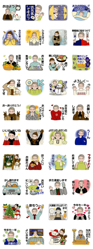 冬に使いやすい心温まる日常スタンプ(シニア世代用)です。寒い季節にほっこりやさしいメッセージをお届けください。冬のイベントにも。冬/日常/挨拶/クリスマス/年末年始mifumi より発売