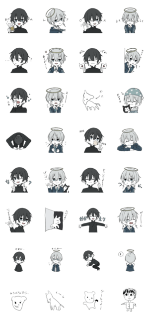 白と黒の男の子。犬は左手で描きました。Oz より発売