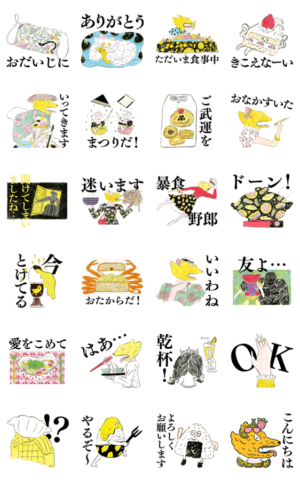大好評食エッセイシリーズ「わるい食べもの」がスタンプに!小説家が選んだ強めワードと人気イラストレーターによるへんてこかわいいイラストのコラボがクセになる味わい。