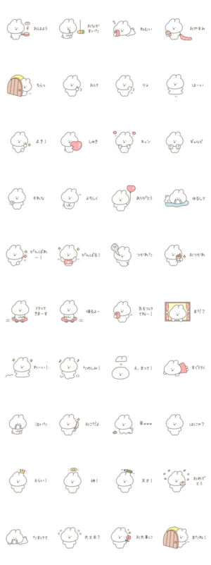ウサギ/ゆるい/シンプル/かわいい/一言スタンプ/小さいスタンプ/省スペース/毎日使える/日常会話/挨拶/おはよう/おやすみ/友達/家族連絡/カップル/はにゃ?/ギャルピース