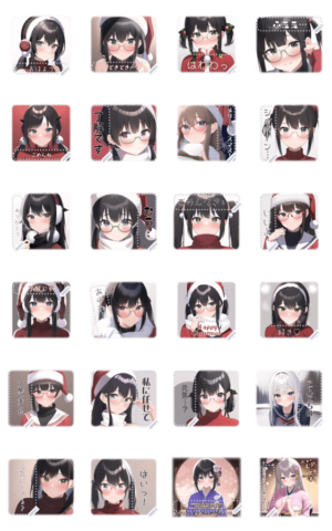 AIカノジョ。-Christmas-はAIイラストで作った女の子たちのスタンプです。 アニメ,美少女,かわいい,萌え,挨拶,冬,サンタクロース,クリスマス,コスプレ,2023年正月,年賀状 現在この商品は一部のスマートフォン版LINE 10.3.0以上のトークルームでのみ使用できます。動作環境の最新情報はヘルプをご確認ください。AI art より発売