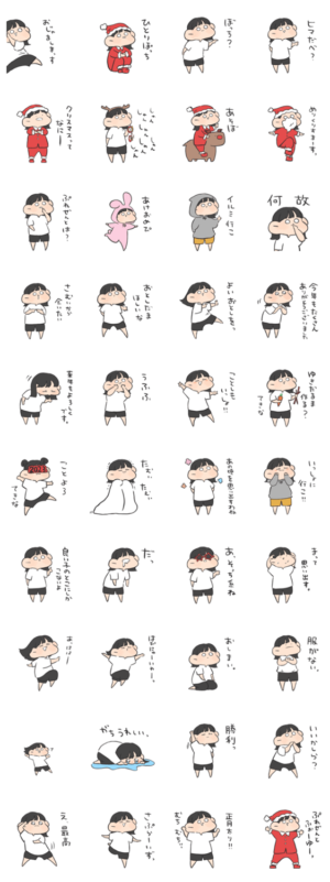 シンプルな人物キャラクターのスタンプ。全体的に可もなく不可もなくといった出来だが、ボリューム感には優れる。