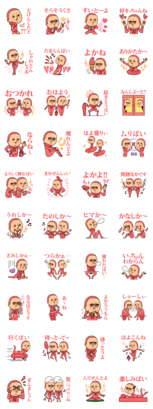 明太子カラーの「ぷりてぃツイン」。九州/福岡県のかわいい方言、博多弁のLINEスタンプ。ありふれた日常のやりとりにシュールなユーモアで彩を。