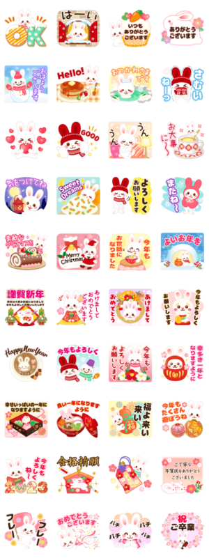 優しくトークを彩るかわいいうさぎさん♡日常から年末年始の挨拶まで♪敬語多めで丁寧対応。クリスマス.Xmas/お正月/年賀/お祝い/誕生日おめでとう/卒業/ありがとう/卯年