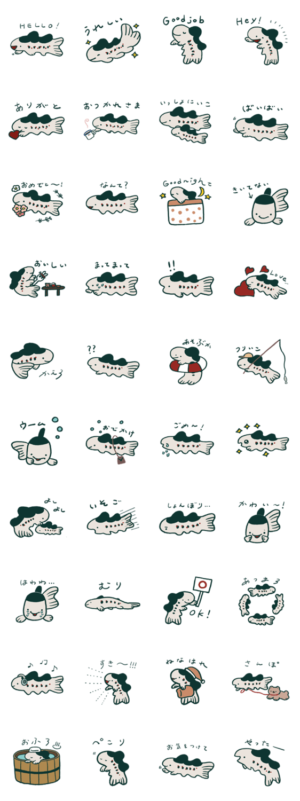 渓流魚のアマゴちゃんの、のんびりしたスタンプです。お魚や水族館、渓流釣りが好きなあなたへ!水草堂 より発売