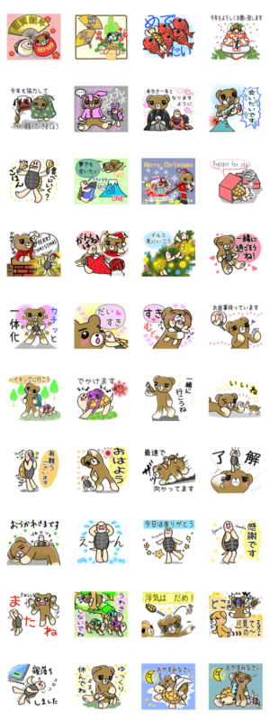 通年使える、日本いしがめとのんびりくまカップルのスタンプです。ラブラブカップルのコミニュケーションにお役立て下さい。※2023/1/3(火)23:59までに購入すると特典「LINEおみくじ」がもらえます。