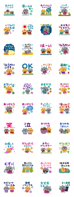 冬に活躍する温かい言葉のスタンプです。 大好きな人や大切な人に! 日常会話にも使ってね♪KAKKOBOX より発売