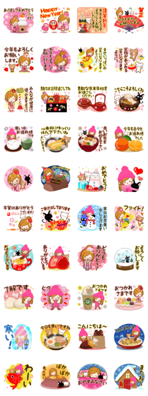 みんなが幸せになることを願って描いた年末年始スタンプです☆毎年使えるデザインと敬語中心で冬、年末年始、日常使いにもおすすめです♪ かわいい猫とくまも一緒に♡ルルー より発売
