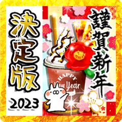 2023年/正月/お正月/年賀/年賀状/うさぎ/兎年/卯年/令和五年/元旦/新年/年末年始/謹賀新年/賀正/寒中見舞い/華やか/飛び出す/ねことうさぎの名前スタンプより/山田まぽん作※2023/1/3(火)23:59までに購入すると特典「LINEおみくじ」がもらえます。山田まぽん/名前スタンプ より発売