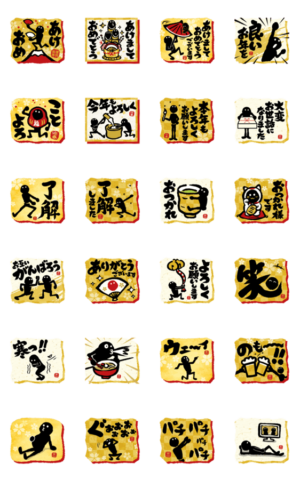 【人気作の再販です】アニメーションスタンプの年末年始バージョン!!日本の文化の「筆文字」で伝えよう!!墨と動く人が会話にインパクトを与えてくれるはず!!かずのこ より発売