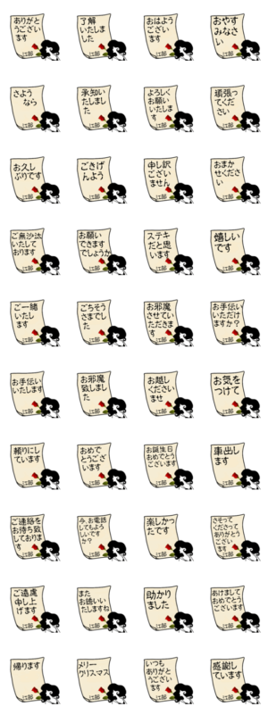 敬語スタンプ 承知いたしました おまかせください おめでとうございます 感謝しています ごきげんよう 帰ります ご無沙汰いたしております ミステリアスなスタンプ