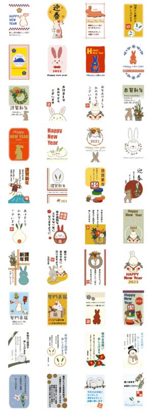 年末年始に使える大人な挨拶文です。 (年賀状/うさぎ/卯/年末年始/丁寧/敬語/寒中見舞い/喪中/お正月/ママ/ママ友/パパ/家族/同僚/職場/上司/友達/謹賀新年/ハガキ風) ※このスタンプはトークルームで大きく表示されるBIGスタンプです。MAYA より発売