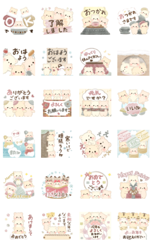 3匹のこぐまがぴょこっと飛びだす冬のポップアップスタンプです。あいさつ・シンプル・敬語・くま・年末年始・クリスマスchatoran より発売