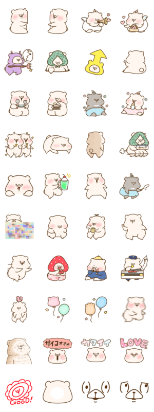 コロンとしたクマが癒やされて可愛いと思いました。文字があまり無いので使いやすいです。