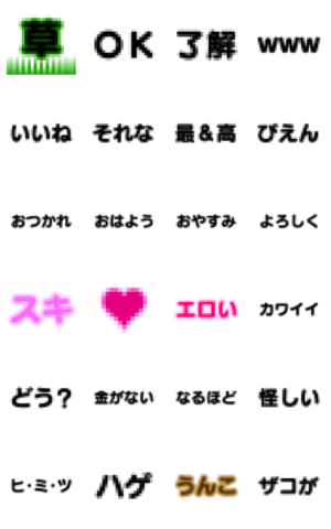 画面いっぱいに飛び出すでか文字はギリギリ読めるモザイク処理が施されており、トーク相手の想像力を掻き立てる!デカ文字ネタ系スタンプの決定版!