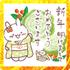 うさぎとシマエナガ ほっこり華やかお正月 スタンプ画像一覧