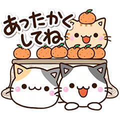 『ちびブチ』『ちびシャム』『ちびトラ』『ちびミケ』『ちびアメ』の絵文字もあります!『5匹のちび猫』の冬の行事でも使える便利なネコスタンプ。【かたこ】かたこ より発売