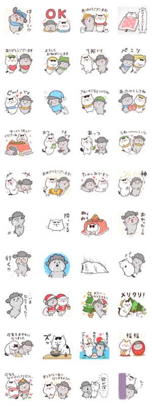 これからの寒い冬にピッタリなスタンプで、暖かそうな猫ちゃんとわんちゃんに、心温まります。