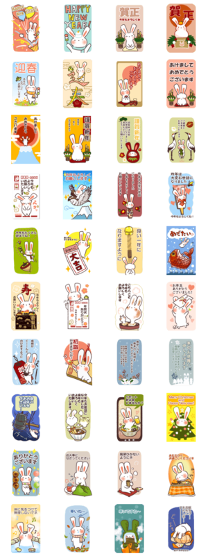 2023年は卯年。お正月のあいさつやシーンに使える、ほんわかしたウサギのビッグスタンプです。三色団子が好きな兎さんです。冬の気づかい/喪中・寒中見舞い※2023/1/3(火)23:59までに購入すると特典「LINEおみくじ」がもらえます。kazu より発売