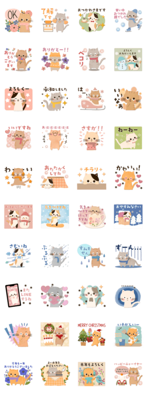 冬・年末年始♡可愛いゆるねこ スタンプ画像一覧