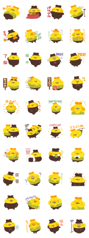 ゆるい天ぷらの忍者と侍が、もふもふの厚い衣になったスタンプです。分厚い衣で油分も高めです。シノザキ より発売