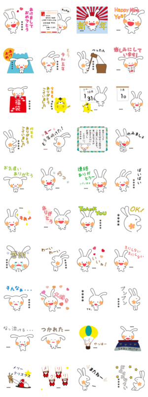 ほっぺにお花のはなほっぺうさぎ。年末年始に使えるカスタムスタンプ。クリスマス、年末カウントダウン、お正月、年越しに使えます。喪中用のスタンプもあります。※2023/1/3(火)23:59までに購入すると特典「LINEおみくじ」がもらえます。コチニージョ より発売