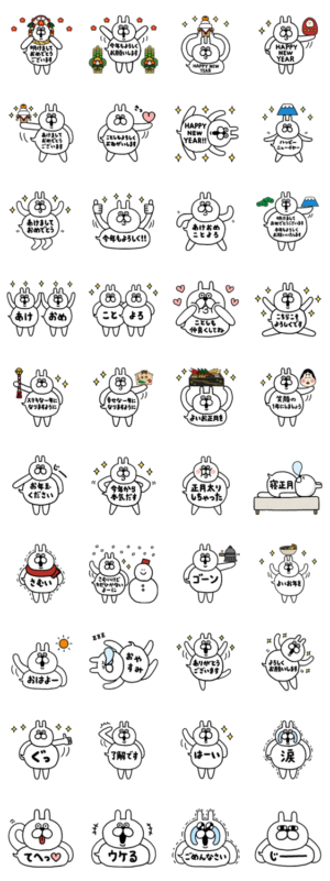 吹き出しになったウサギのあけおめスタンプのダウンロードはこちら↓