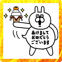 吹き出しになったウサギのあけおめスタンプです。(あけおめスタンプ お正月 正月 新年 年末年始 年賀状 あけおめ ことよろ あけましておめでとう 卯年 うさぎ 敬語)※2023/1/3(火)23:59までに購入すると特典「LINEおみくじ」がもらえます。グリンピース より発売
