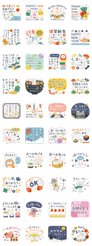 2023年の干支「うさぎ」のスタンプも入っています♪※2023/1/3(火)23:59までに購入すると特典「LINEおみくじ」がもらえます。