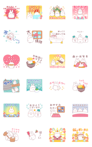 うさちゃんのお正月スタンプ。かわいいのに更に動くとかずるい!かわいいだろーー