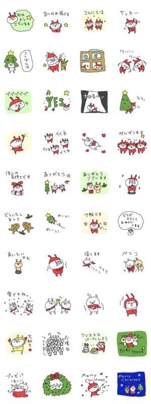 にしおかあきのクリスマスウサギスタンプです。冬の日常に使えるデカ文字スタンプです。プレゼントにも!にしおかあき より発売