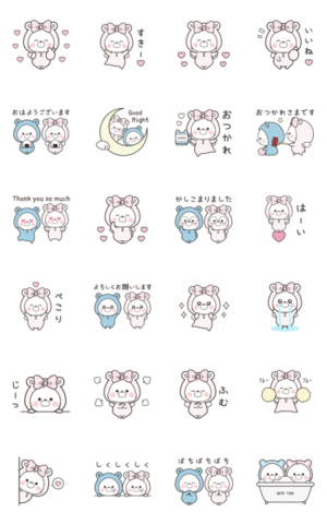 よく使う言葉、挨拶、敬語あり。くまのおうちのくまぽことリボンちゃんの可愛く動くスタンプです♪