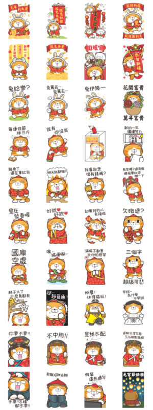 今回いっぱいうさぎが出ちゃうよ!毎年恒例の中国清王朝ふと占い師変装もあって、ランラン猫、ドラドラ猫、モチちゃんと一緒過ごしましょう♥ ※このスタンプはトークルームで大きく表示されるBIGスタンプです。Mochi dad より発売