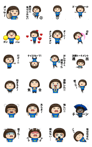 日本を応援するサッカー女子 ゼッケン93番 スタンプ画像一覧